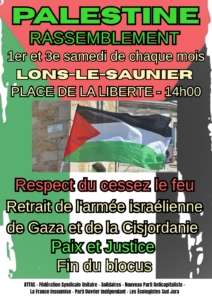 Attachée à la paix et condamnant sans réserve le racisme, l’antisémitisme, le colonialisme, les discriminations, et les différentes formes d’oppressions, la FSU39 appelle à un cessez-le-feu et à une paix juste et durable. Nous participons donc aux initiatives unitaires qui défendent une politique de paix juste et durable, dans le respect des droits des peuples, et des résolutions de l’ONU.